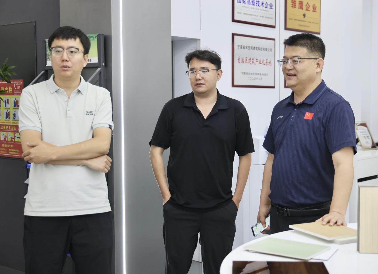 孟陆一行实地参观了了园区的数字化展厅、模拟实验室、创客咖啡及书吧、智慧党建室等空间,深入了解了校企联合打造的“宁夏智慧文旅大数据平台”项目,以及依托文旅大数据开发的数字人产品“小创”。同时,还参观了科技园入孵企业宁夏极客空间建筑科技有限公司,重点了解了其核心产品葡藤板。