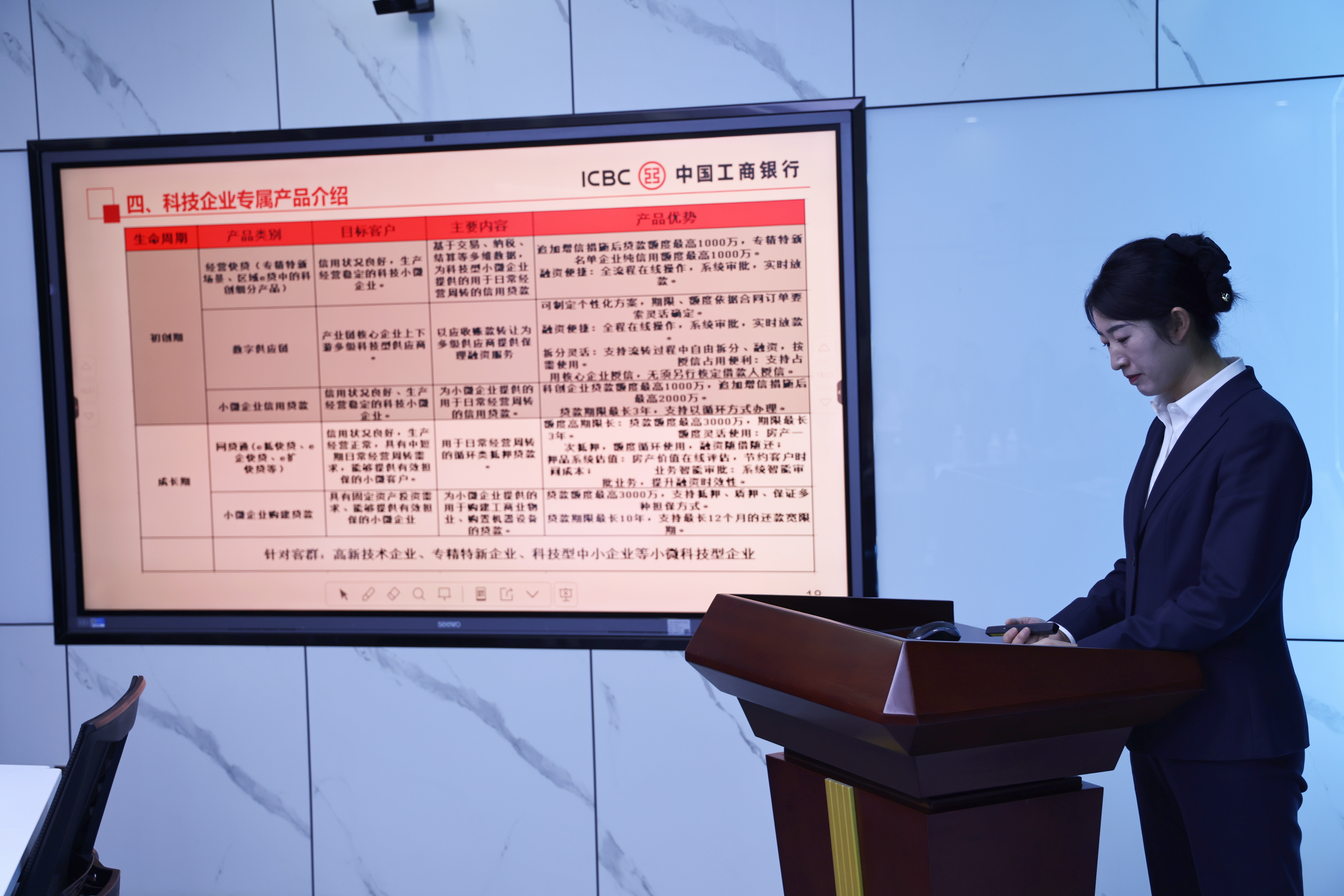 中国工商银行宁夏分行西城支行公司金融业务部科长田欣乐针对企业需求,带来多款特色融资产品,结合园区科技型企业从初创期、成长期到成熟期发展的各阶段特点,针对个人、对公和赋能方面的需求,为科技创新企业提供综合化、接力式金融服务方案,助力企业轻松融资、稳健成长。