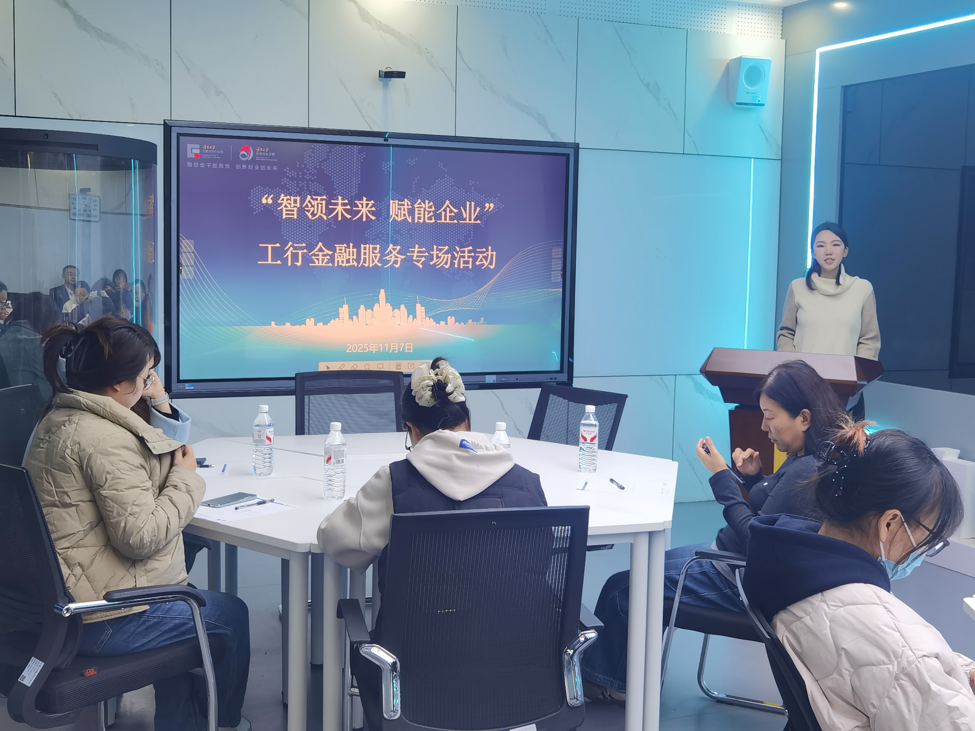 为帮助园区企业系统了解金融服务体系、匹配精准金融服务,11月7日下午,园区特联合工商银行宁夏分行举办“智领未来 赋能企业”工行金融服务专场活动,搭建“银企高效对接平台”,活动吸引20余名园区企业负责人及财务专员参加。通过“政策解读+产品推介+定制服务”的方式,整合优质金融资源,帮助企业解决融资方面遇到的实际难题。