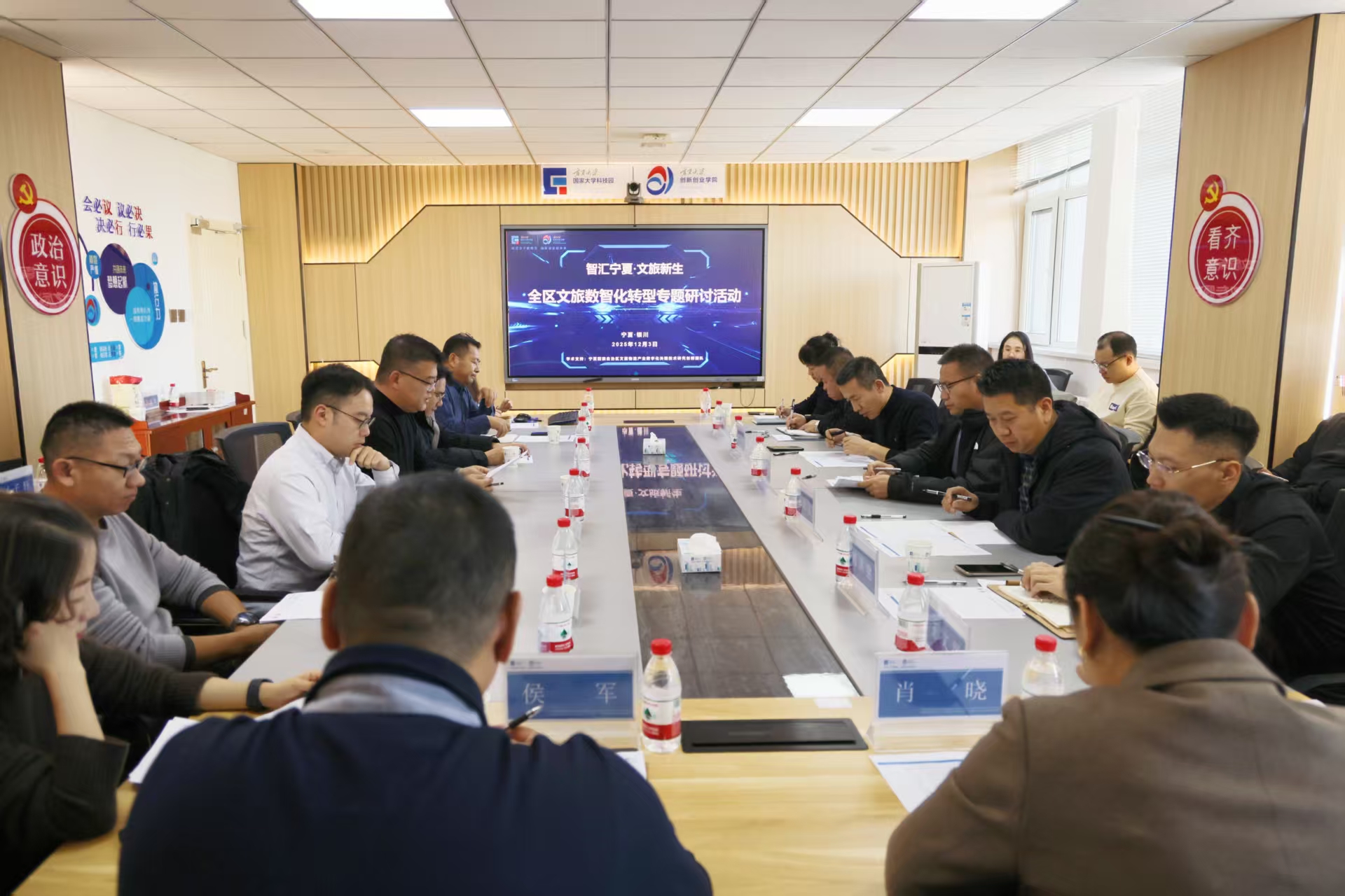 会议由宁夏大学创新创业学院(大学科技园办公室)院长(主任)冯蛟主持,自治区文化和旅游厅科技教育处处长王彦庚、宁夏旅游信息中心主任马林、人事与老干部处副处长张天文等有关部门领导,武汉大学经济与管理学院长聘副教授孟陆、四川农业大学管理学院副教授杨京雨等高校专家,及全区各市文旅主管部门、重点文旅企业代表共20余人参加本次研讨,共商宁夏文旅产业数智化高质量发展之策。