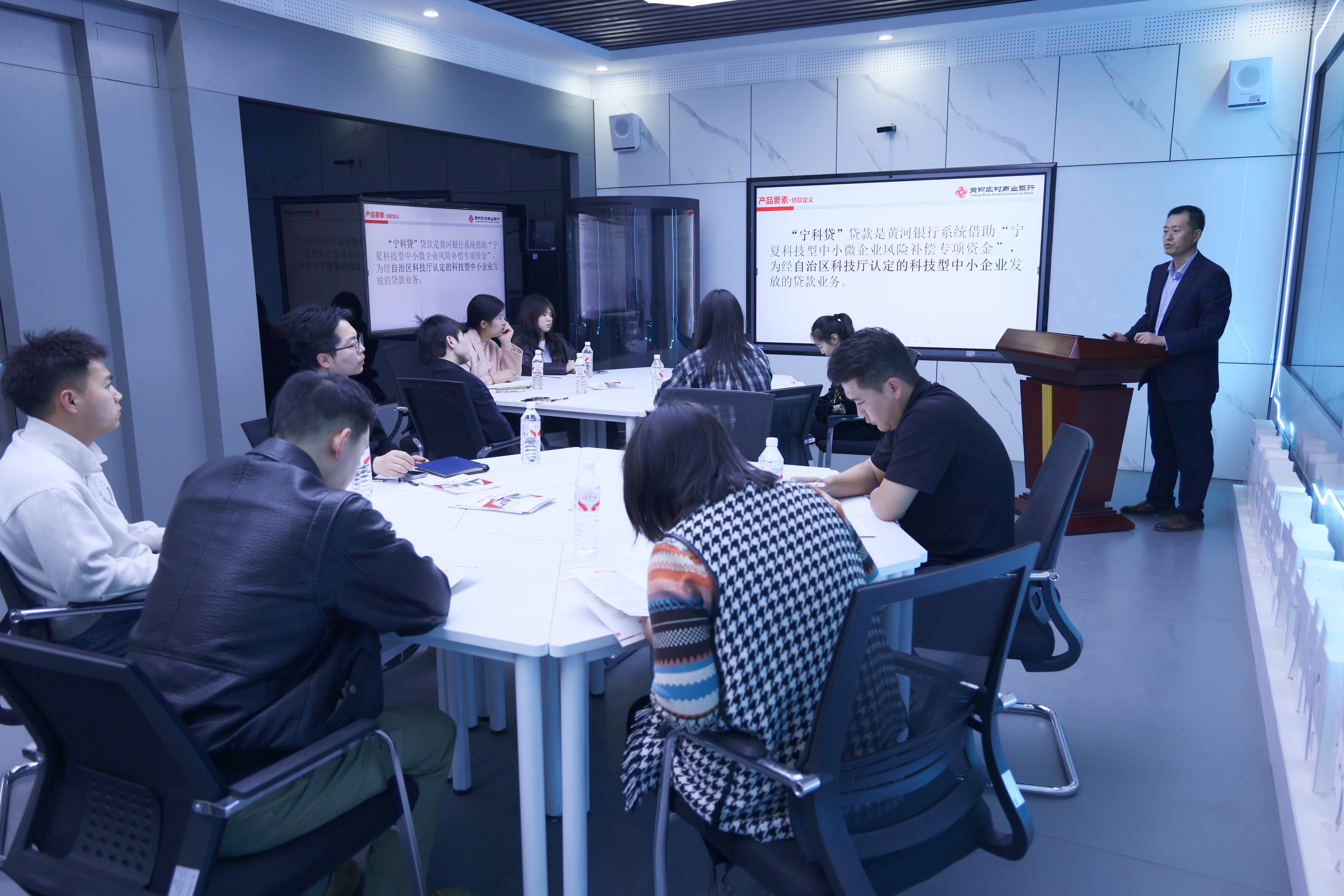 黄河农村商业银行兴庆区支行客户经理王秋露为企业详细介绍“宁科贷”产品要素、客户群体、办理流程等内容,旨在帮助科技型企业提供精准金融服务方案,助力企业轻松融资、稳健成长!