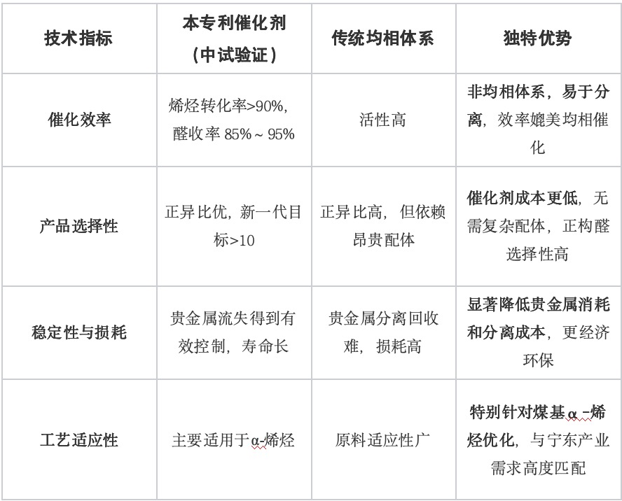 (4)产业协同效应显著:技术与宁东基地丰富的煤基烯烃原料无缝衔接,可直接嵌入现有产业链,实现“原料-关键中间体-高值化学品”的区内转化,提升整体产业效益。