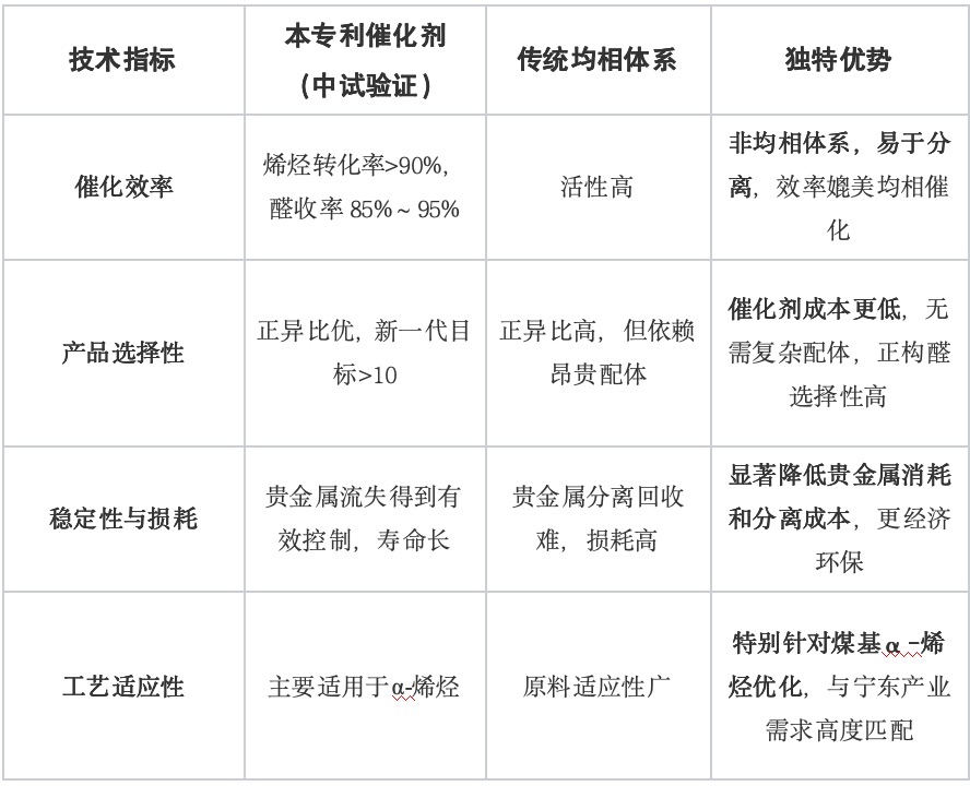 (4)产业协同效应显著:技术与宁东基地丰富的煤基烯烃原料无缝衔接,可直接嵌入现有产业链,实现“原料-关键中间体-高值化学品”的区内转化,提升整体产业效益。