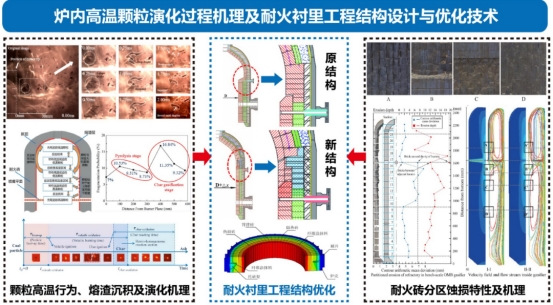 (1) 提出了气流床水煤浆气化高温颗粒演化过程机理,形成了气化炉耐火衬里工程结构设计与优化技术。优化后的气化炉炉膛空间增加约15%-25%,负荷最高可提升30%-50%,有效气组分等工艺技术指标仍保持原有的先进性,显著优于国外同类技术。