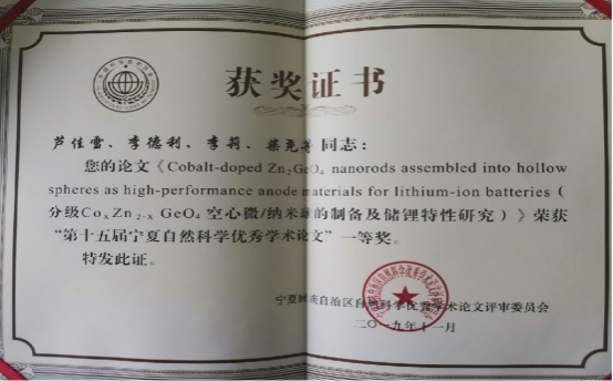 成果名称:锗酸锌基固溶体纳米复合材料的设计制备和性能研究