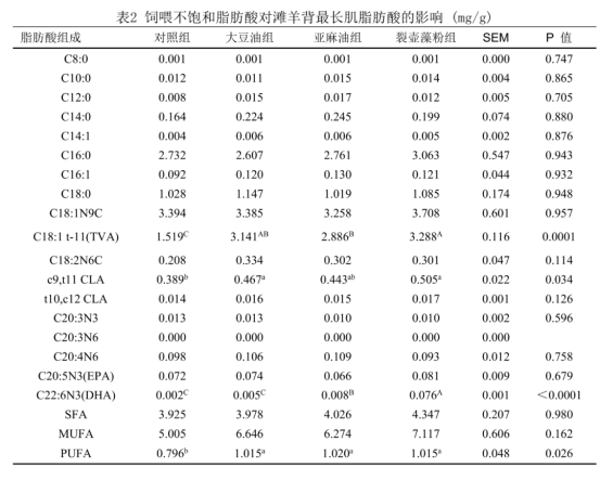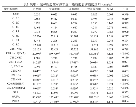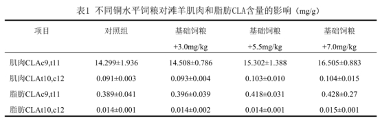 饲养试验和屠宰试验结果表明,适宜精粗比、日粮铜含量和不饱和脂肪酸是提高滩羊肉CLA的含量有效途径。