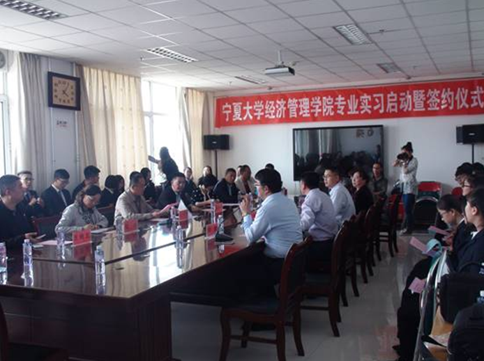 5月25日下午,经济管理学院专业实习启动仪式暨签约仪式在文科楼902会议室召开。兴庆区党委副书记孔令杰,劳动就业局局长张玲等八位代表及经济管理学院党委书记张桓、院长杨国涛等院领导出席了本次会议。