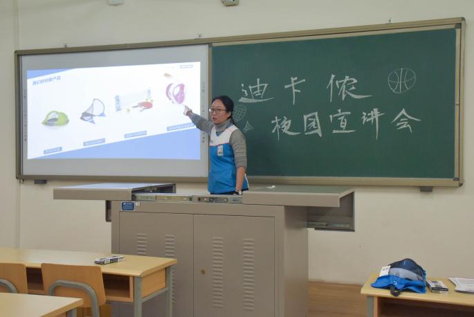 在简短的互动之后,主持人首先就迪卡侬发展历程进行介绍,夏樱介绍了迪卡侬当下的的运营状况、未来的发展目标以及招聘人才的职业发展。随后利用视频的方式,向大家展示了迪卡侬的各类部门及相关职位。最后,到场的迪卡侬员工对同学们提出的企业薪资待遇等问题答疑解惑。