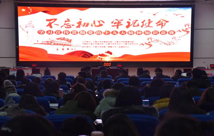 不忘初心,牢记使命。宁夏大学于12月13日晚在贺兰山校区文荟楼东报告厅举行“学习宣传贯彻党的十九大精神知识竞赛”决赛。参赛队伍是经过层层选拔、脱颖而出的经济管理学院、政法学院、民族预科学院等六个学院。校党委组织部副部长张航、学生处副处长马瑜、校团委副书记肖功国、校学生会主席胡桢麟出席此次活动。
