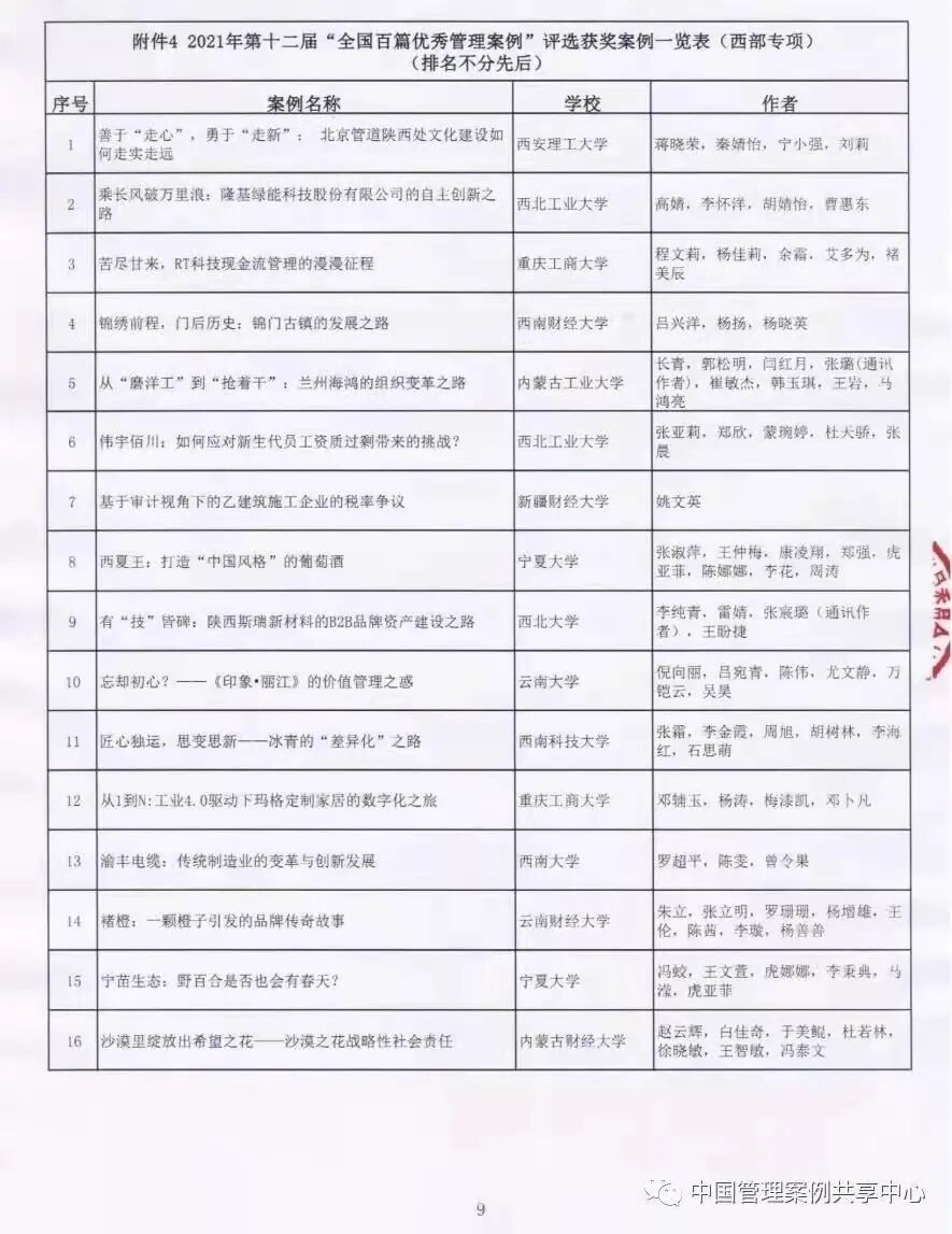 据了解,全国百篇优秀管理案例评选是工商管理案例领域的最高奖项。本届案例评选于由此可见入选该奖项的难度,《宁苗生态:野百合是否也会有春天?》原创案例也表现出了宁夏大学经济管理学院师生的学科能力和专业能力,同时也希望能有更多优质企业可以跟我们合作,研究创作出更多优质案例,为全国商科高校贡献出属于我们的一份力量!