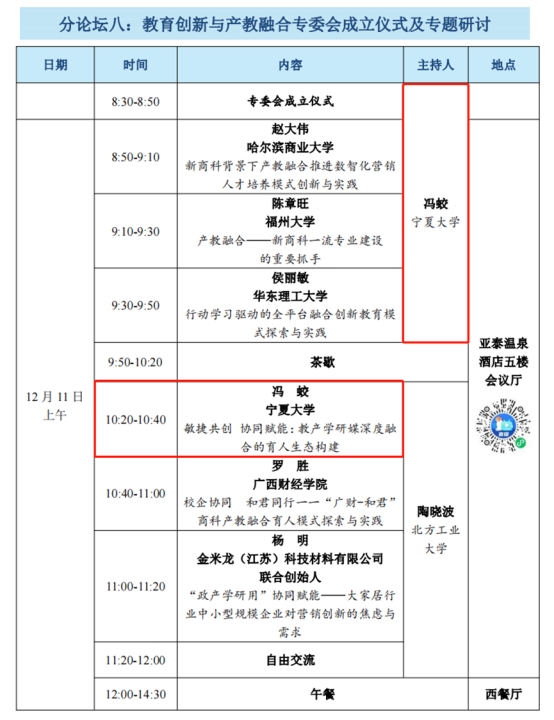 12月11日,数研院冯蛟教授应邀参加在教育创新与产教融合专委会成立仪式及专题研讨中作题为《敏捷共创》。同与会各界一道,探讨构建育人生态的实践成果并总结交流成功经验。同时,冯蛟教授还将应邀担任专题研讨的主持人。