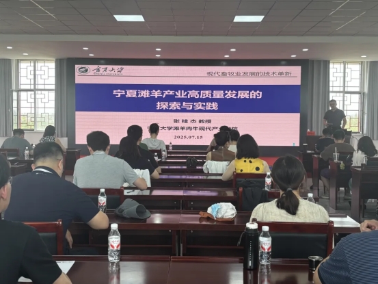 第二日,主题转向“现代农业与乡村振兴”。学员们深入宁夏盐池滩羊产业发展集团有限公司及盐池县产业集群,系统学习滩羊产业如何实现从规模化养殖到品牌化升级的蜕变之路。午后,宁夏大学张桂杰教授以《宁夏滩羊产业高质量发展的探索与实践》为题进行专题讲座,剖析科技赋能传统畜牧业绿色转型的前沿动态。